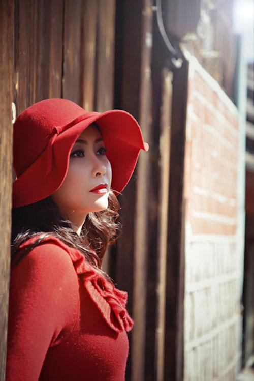 Khuôn mặt dài của Hà Kiều Anh càng cuốn hút hơn với chiếc mũ rộng vành đỏ.